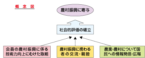 全国農村振興技術連盟では、会員の農村振興に係る技術力向上にむけた取組、農村振興に携わる者の交流・親睦・情報交換、農業・農村について国民への情報発信・広報などの活動を行っています。そうした活動を通じて、農村振興の重要性について社会的評価を確立し、農村の一層の振興に寄与することを目的としています。